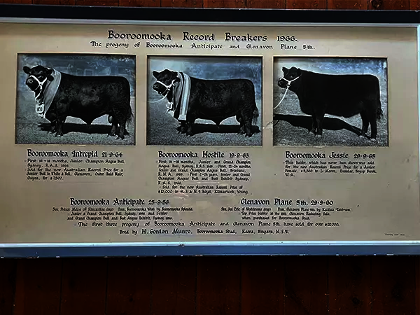 Gordon Munro established Booroomooka Angus Stud, starting with five heifers purchased from Mr. N.L. Foster of Abington, Uralla.